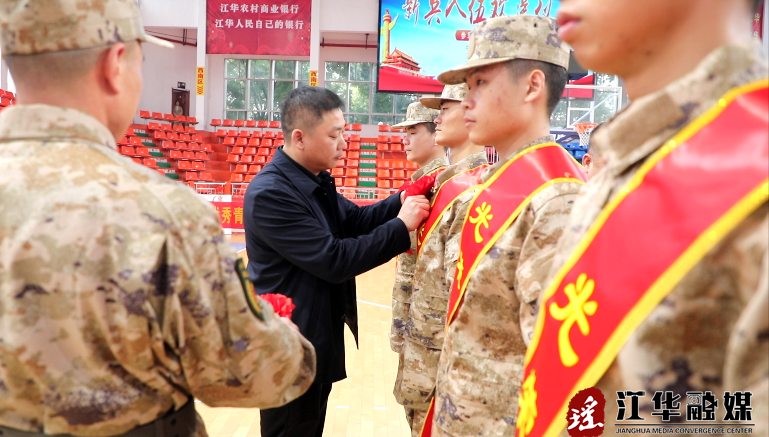 欢送大会在庄严的国歌声中拉开帷幕,50名新兵身着戎装、肩披绶带,精神抖擞、整齐列队,展现了新时代青年参军报国、建功立业的家国情怀。随后,与会领导分别为应征入伍的新兵佩戴大红花。何开银代表江华县委、县政府向光荣入伍的有志青年表示热烈祝贺,向送子参军的新兵家长们表示崇高的敬意。同时,寄语大家要胸怀大志、勇毅前行,以国为家、报效祖国,努力拼搏、建功军营,用自己的实际行动为祖国争光、为部队争光、为家乡争光、为亲人争光,向党和人民交上一份满意的答卷。