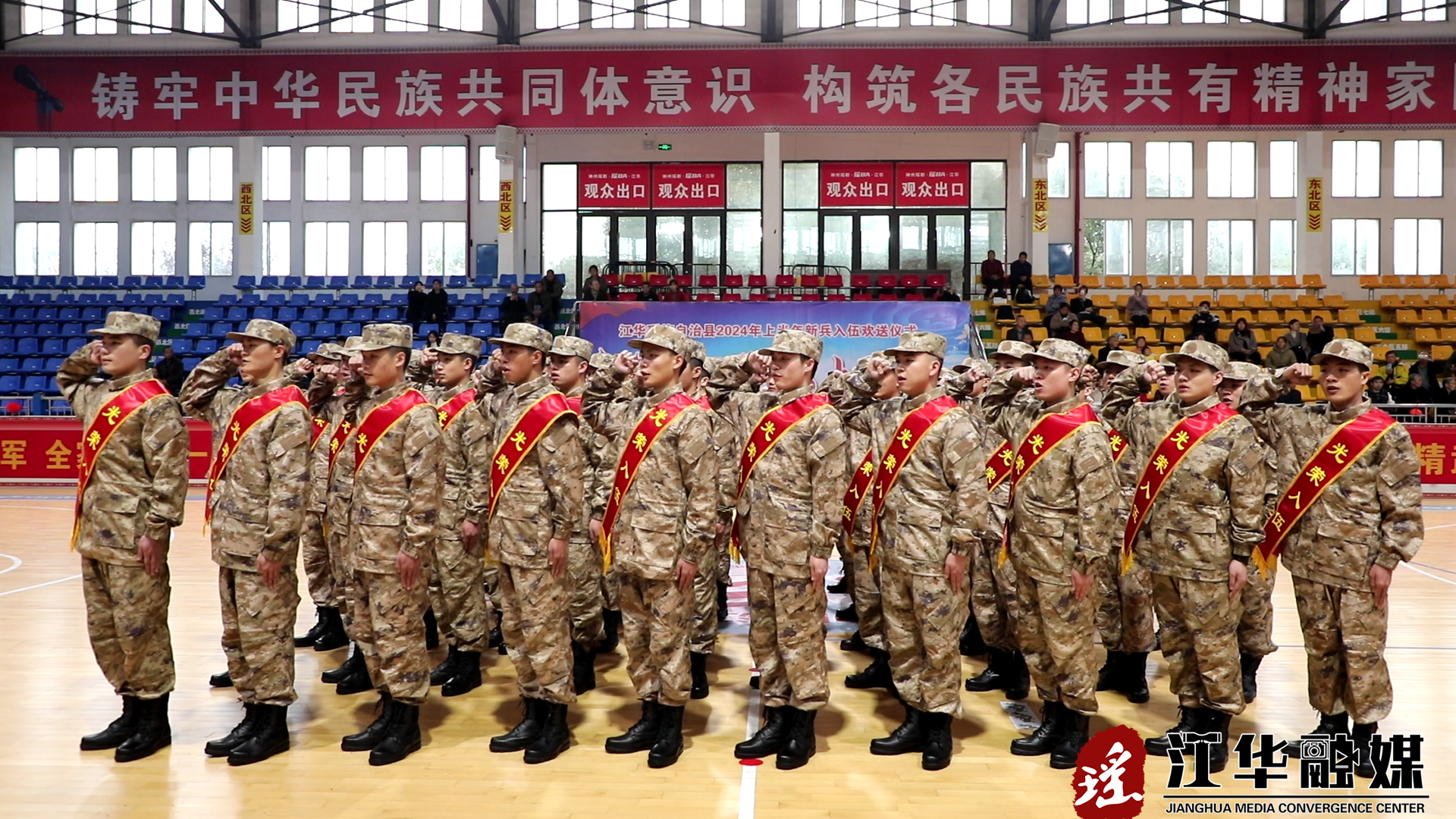 伴随着领誓人的一声令下,全体新兵右手握拳,以慷慨激昂的声音,许下对祖国和人民的铮铮誓言。今年上半年,江华共有260余名有志青年积极应征,经过严格挑选、层层把关,此次入伍的50名新兵即将从戎出征,担负起保卫祖国安全、守护人民安宁的神圣使命。 入伍新兵张明建激动地说“这是我第三次报名参军,终于圆梦了。此刻我的心情非常的激动,到了部队之后,我一定努力学习、刻苦训练,争取早日成为合格的军人。”
